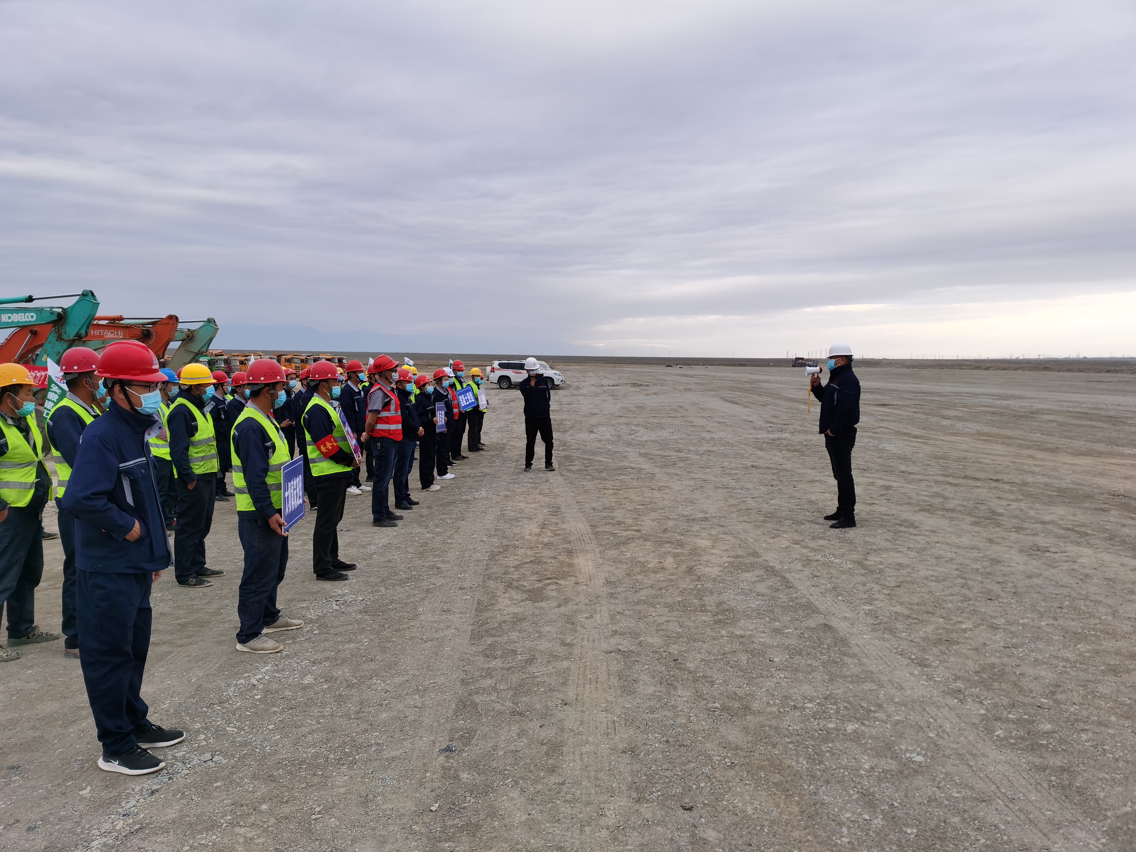 由于疫情影響,項目開工日期延遲近兩個月,為進一步調(diào)動參建人員的積極性和創(chuàng)造性,5月6日,項目部開展“四比四創(chuàng)、大干90天”勞動競賽活動,比施工進度,創(chuàng)最快建設(shè)速度;比工程質(zhì)量,創(chuàng)優(yōu)質(zhì)工程;比安全文明,創(chuàng)安全生產(chǎn)無事故;比成本效益,創(chuàng)良好企業(yè)形象。以競賽促生產(chǎn)、促安全、促管理、促效益、促發(fā)展,有效形成“比、學(xué)、趕、幫、超”的火熱生產(chǎn)局面。5月份的烏蘇市,白天氣溫已達三十度以上,盡管如此,每一位參建人員每天堅持工作十四個小時,偌大的施工現(xiàn)場,近百輛工程機械緊張作業(yè),挖掘機、推土機、壓路機的轟鳴聲震耳欲聾、重型卡車來回穿梭蕩起滾滾煙塵......截至目前,蓄水池壩體填筑已完成232700m3,完成產(chǎn)值約3000萬元,實現(xiàn)節(jié)點任務(wù)滿產(chǎn)超產(chǎn),切實做到“兩手都要抓、兩手都要硬、兩戰(zhàn)都要贏”。
