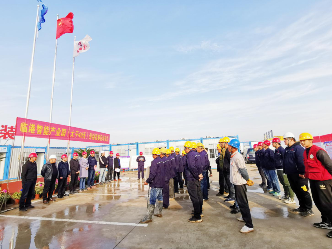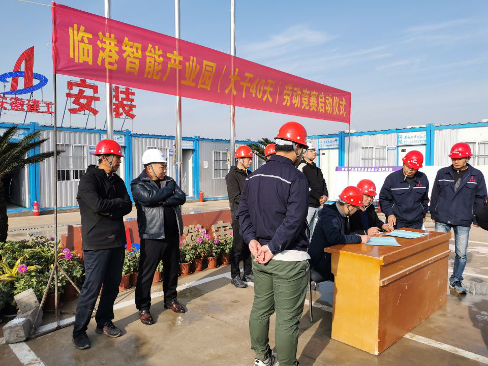 為確保年度各項目標(biāo)任務(wù)順利完成,貫徹落實集團公司開展“戰(zhàn)疫情、搶工期、保目標(biāo)、促超產(chǎn)”為主題勞動競賽活動精神,2020年11月19日上午,安徽安裝召開蚌埠臨港項目“大干40天”勞動競賽動員會。公司紀委書記、工會主席李寬旭,公司相關(guān)部門負責(zé)人,業(yè)主現(xiàn)場派駐代表李先鋒,總監(jiān)代表姚明,項目勘察單位、設(shè)計單位代表,蚌埠分公司領(lǐng)導(dǎo)班子成員,項目管理人員和勞務(wù)單位共計50余人參加活動。